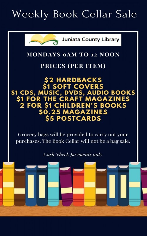 The Friends of the Library book and media sales occur 3-4 times a year. The Friends of the Juniata County Library appreciate the wonderful donations of books and media from the public. Donations may be brought to the front desk of the library during regular business hours. Your book/media donations are instrumental in funding many of the Juniata County Library's programs and services each year. These programs include but are not limited to summer reading for kids and adults, programs for babies and children, current technological devices, furniture, and much more.